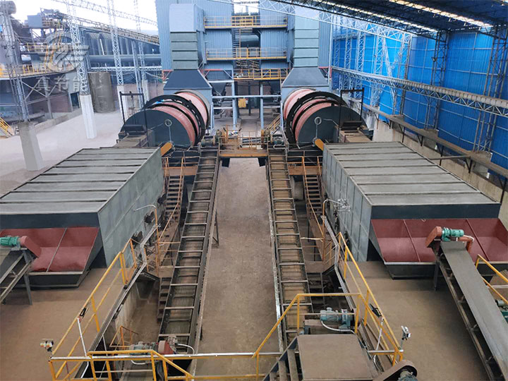 1、該設備結構采用的三滾筒形式,就是將三個不同直徑的圓筒套嵌在一起,增加了筒體容積,縮小了占地面積。